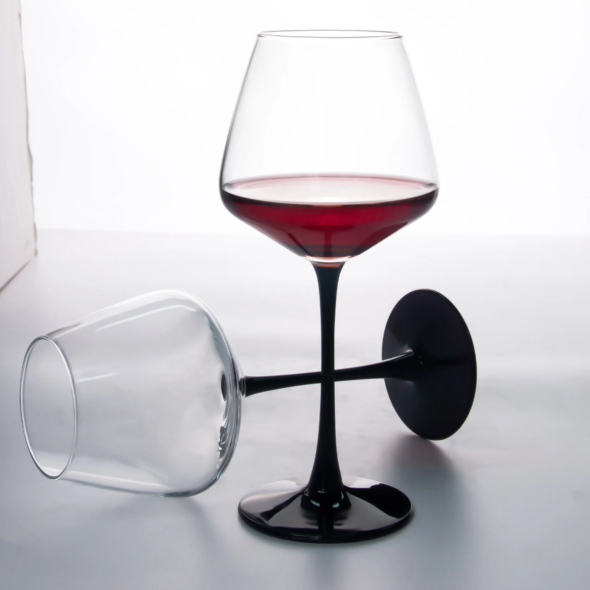 15.5oz 6-Pack Burgundy Black Stem Wine Glasses Shatterproof Dishwasher Safe Durable for Gifts Home
