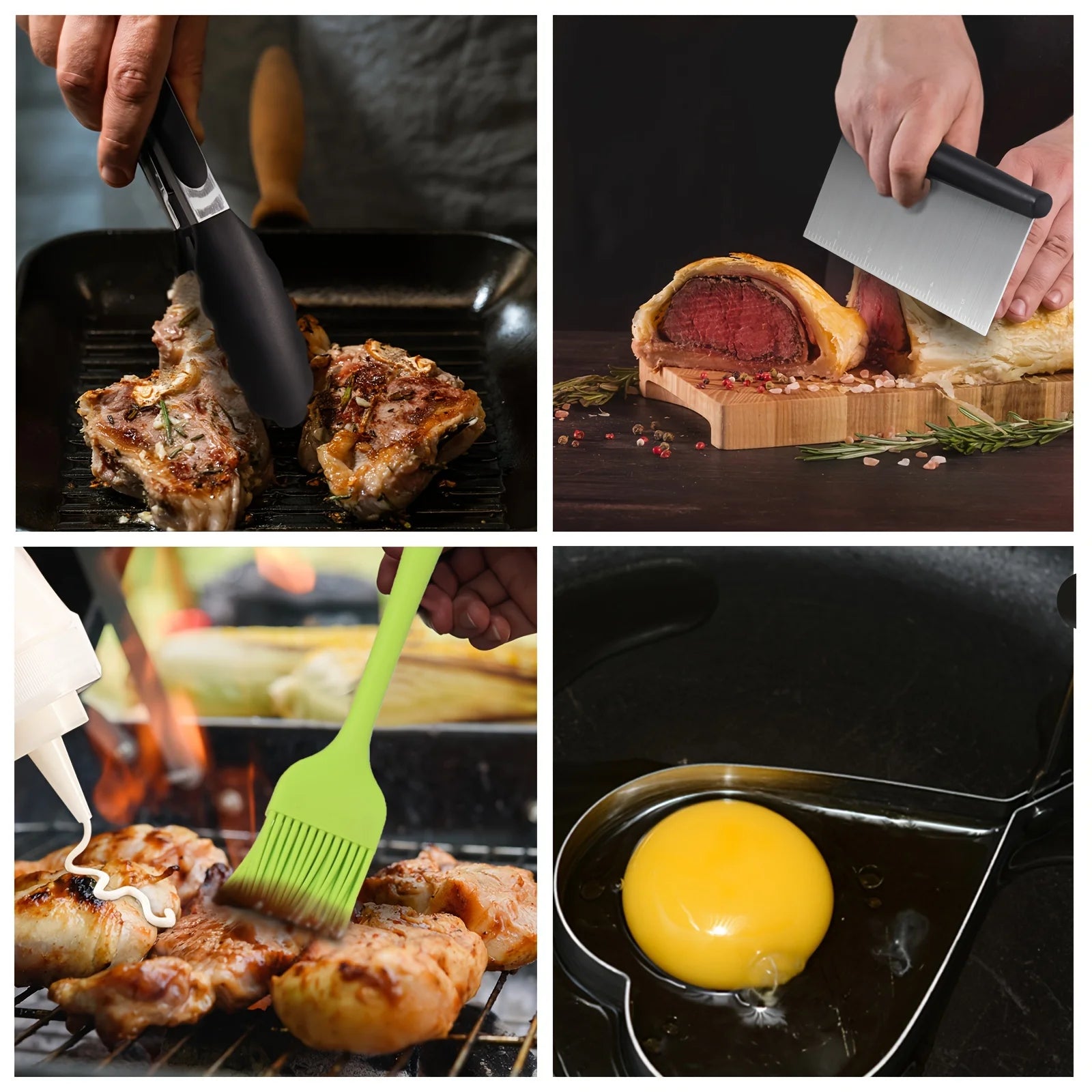 - Premium Stainless Steel: Our tools are built with thick, sturdy stainless steel that resists deformation and damage, making them ideal for cooking hamburgers, steaks, and more.