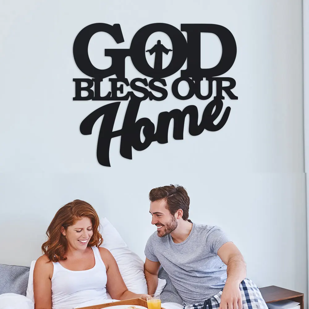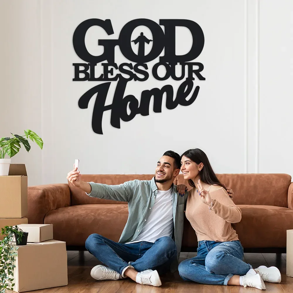 1pc Metal God Bless Home Sign, Unique Wall Art, Home Decor, Wall Hanger, Scene Decor, Theme Party Decor, Car Decor