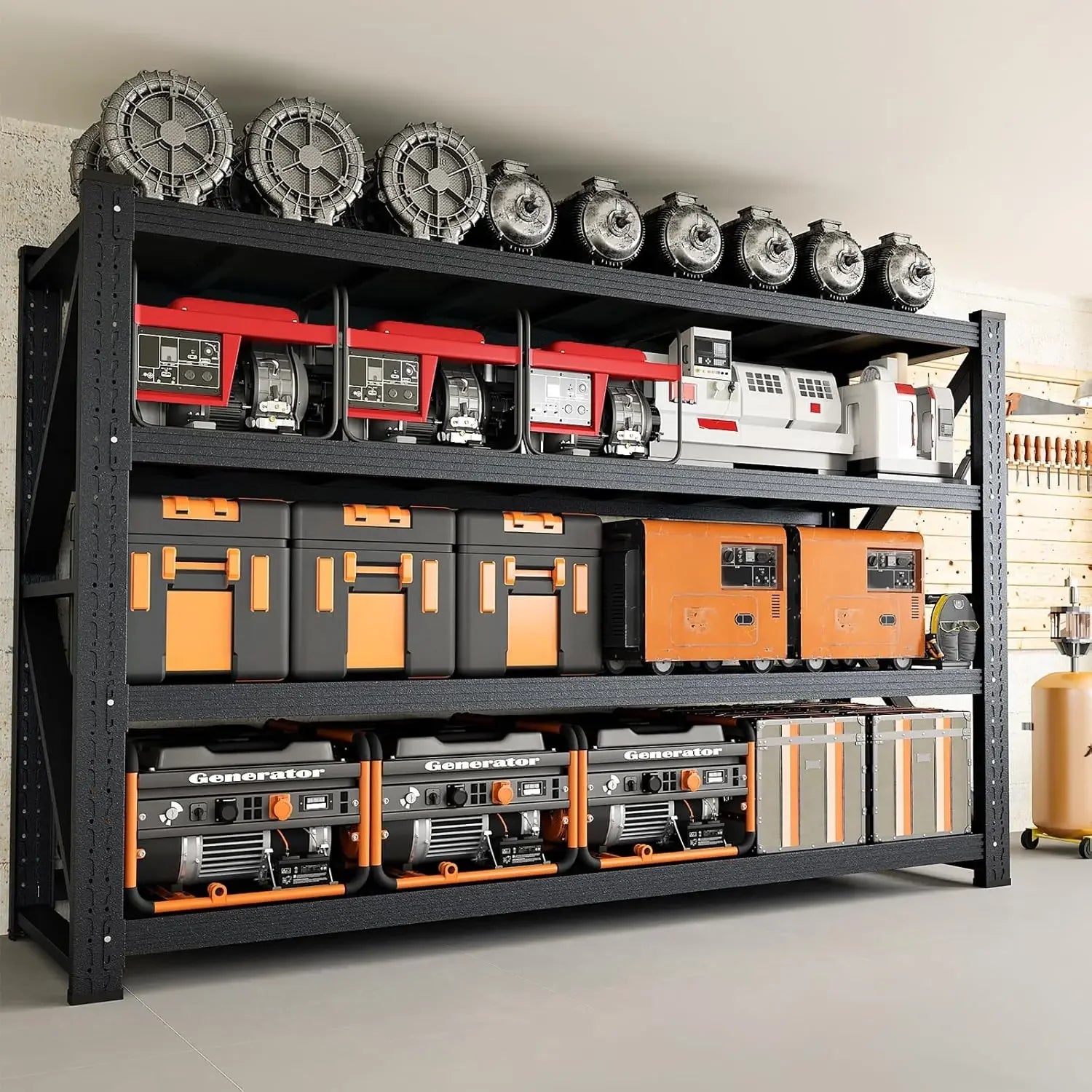 - Heavy Duty Construction: Our innovative one-piece column design eliminates weak points for maximum stability. Built to hold up to 5000 lbs, you can trust these shelves to securely store even the heaviest machinery.
