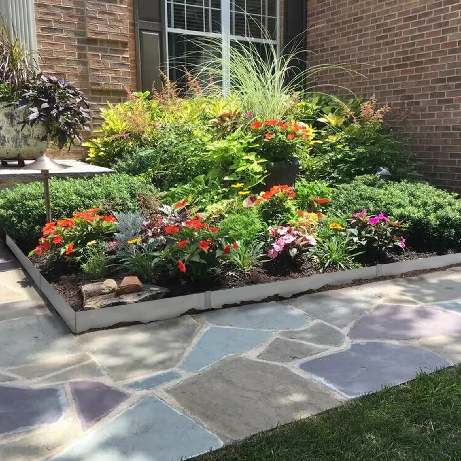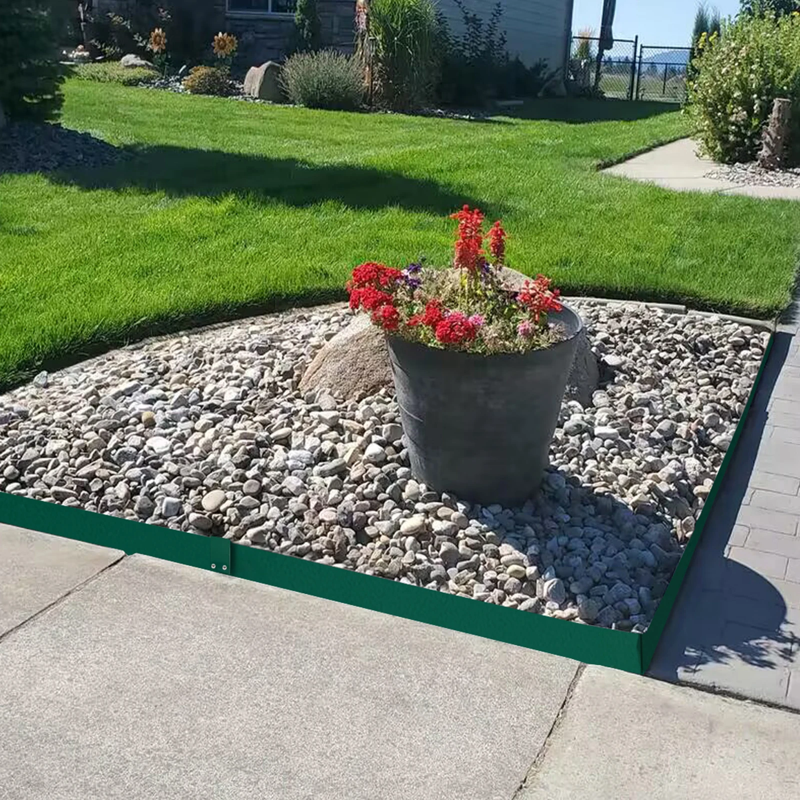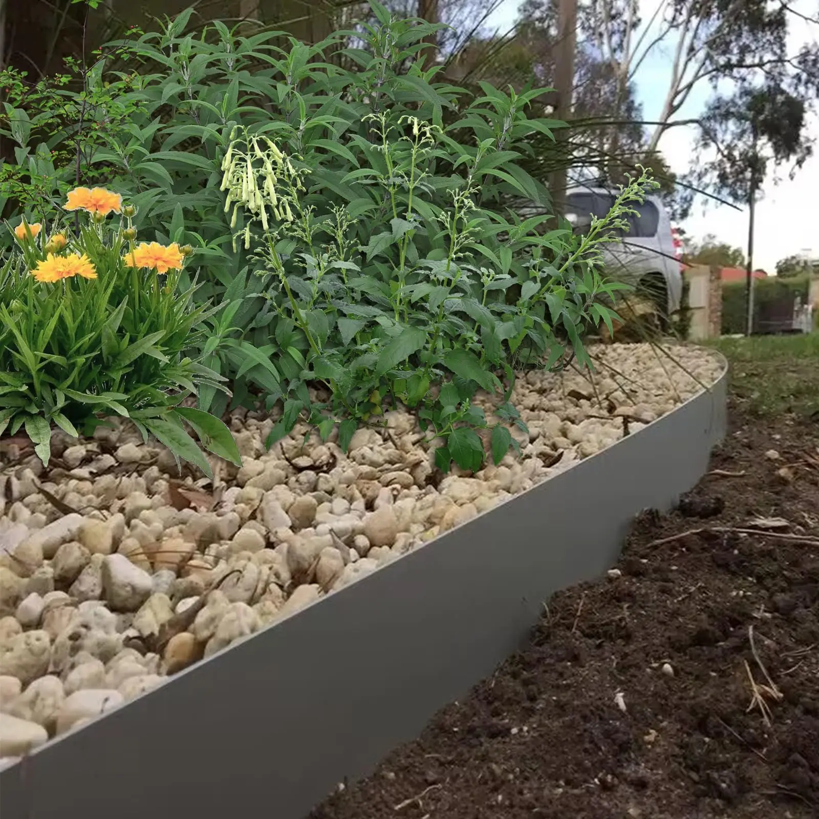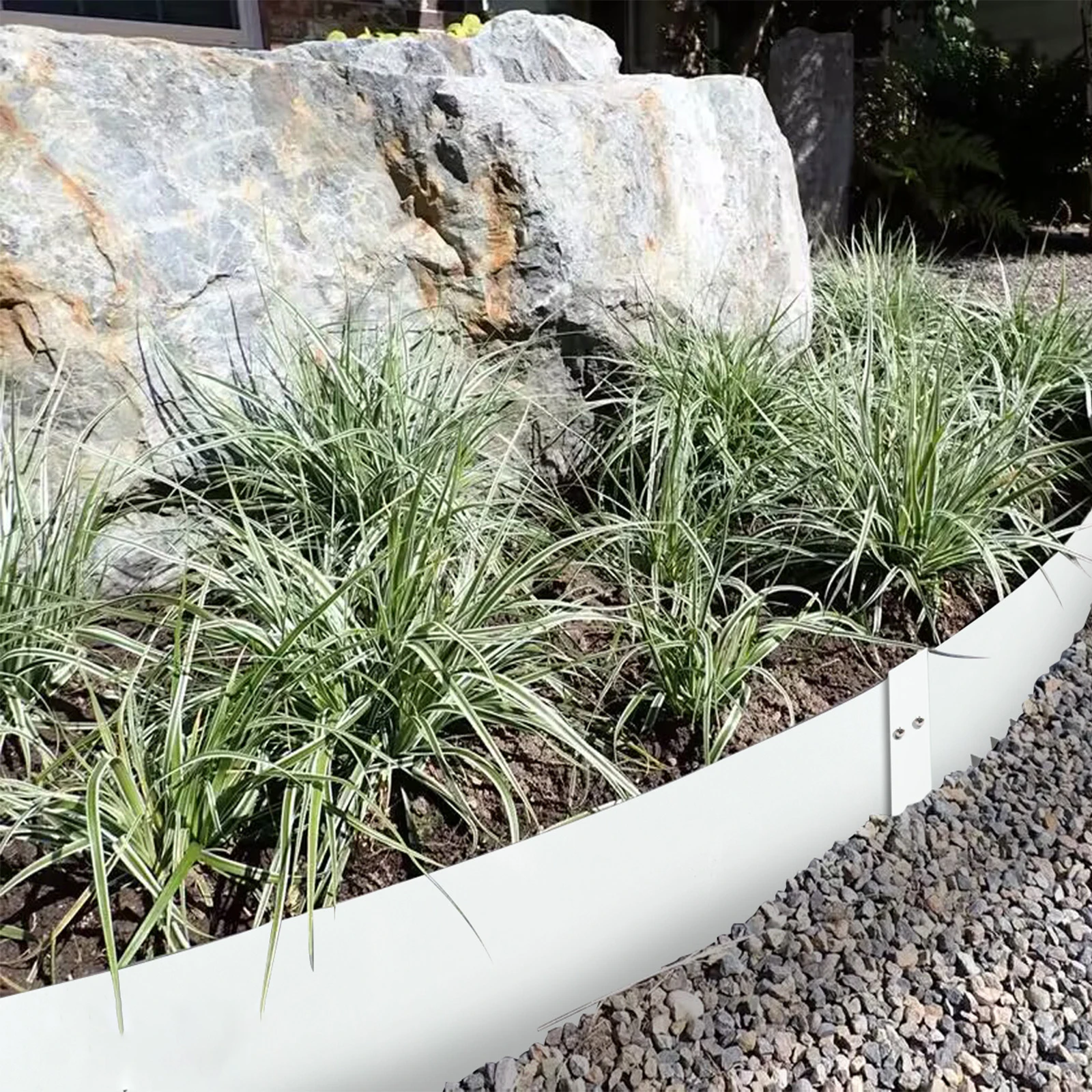A strong metal barrier against escaping roots at 1.1mm thickness and 6 inch or 8 inch height (approx.), prevents grass from invading garden beds and keeps soil, pebbles and mulch inside garden borders for a neat appearance