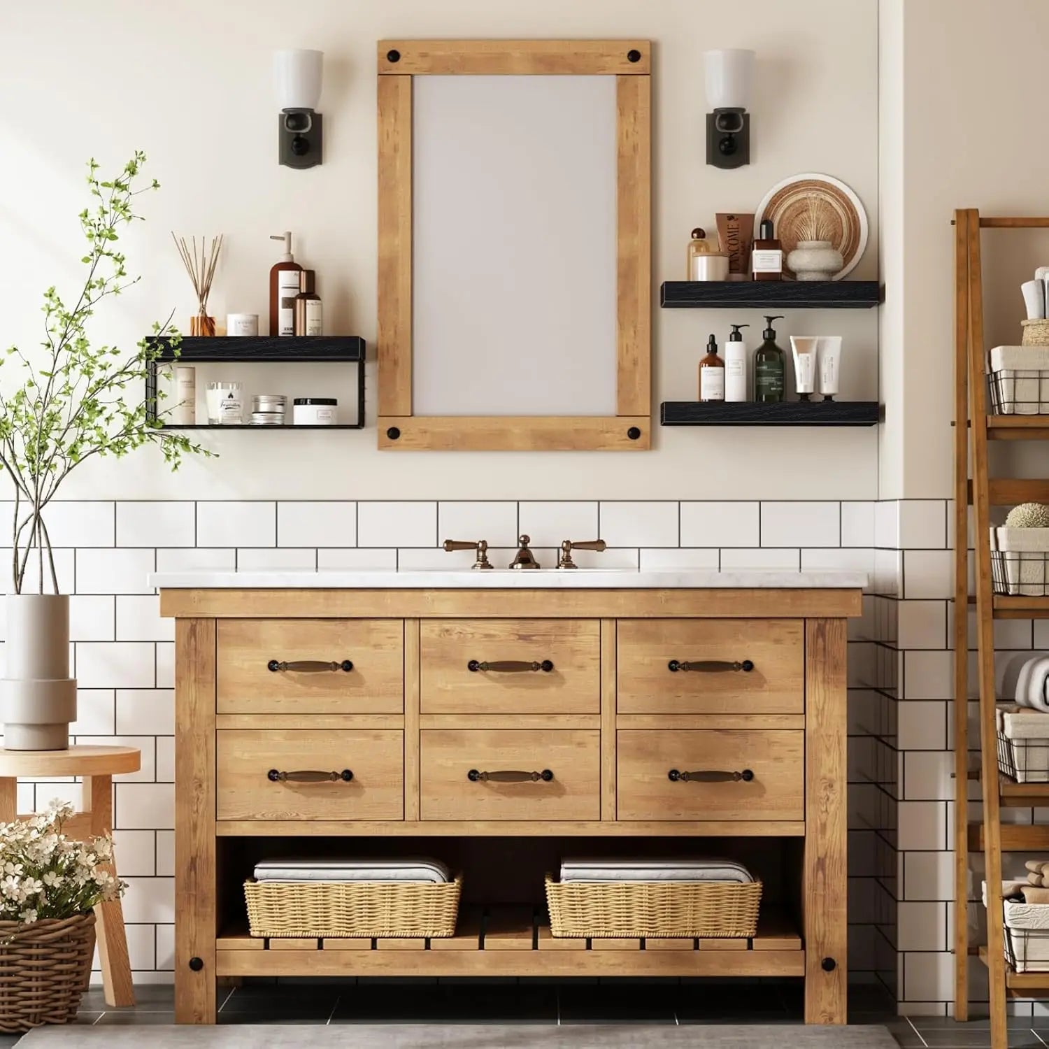 Transform your bathroom into a stylish and organized haven with our Black Bathroom Shelves Over Toilet Wall Mounted Floating Shelves. This set of three farmhouse-inspired shelves not only adds a touch of rustic charm but also maximizes your space effectively.