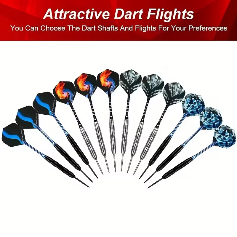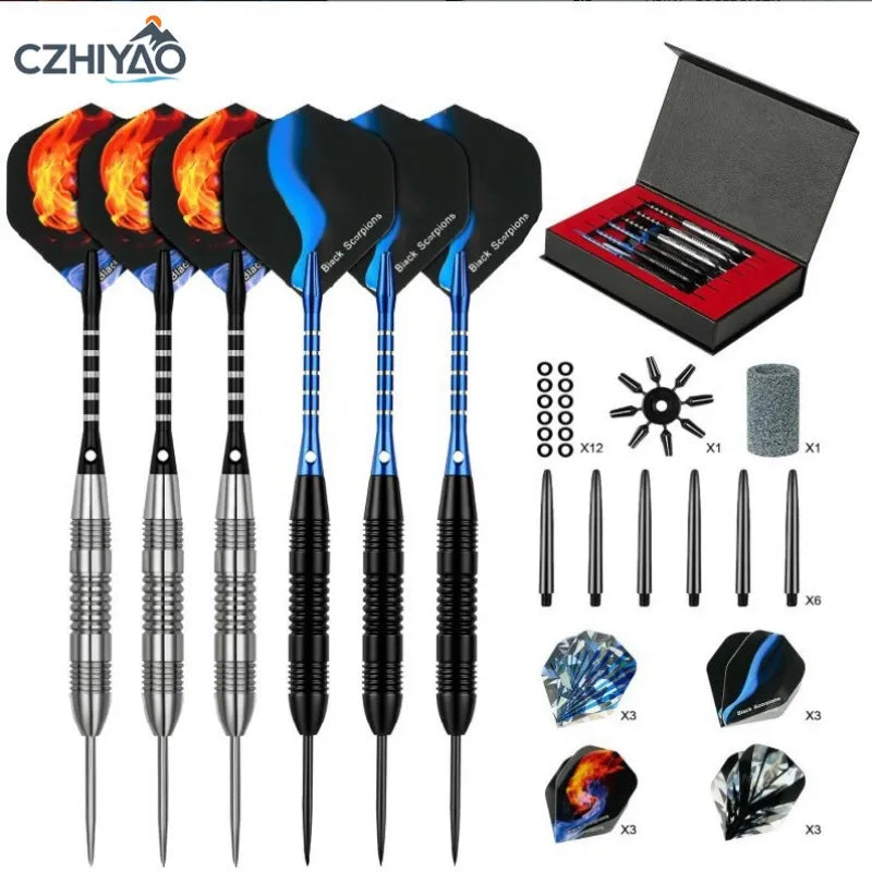 CZHIYAO Steel Darts Set, Professional Darts Tip,4 Style Poly Flights,Dart Sharpener,Rubber Rings,Flight Protector,with Gift Box
