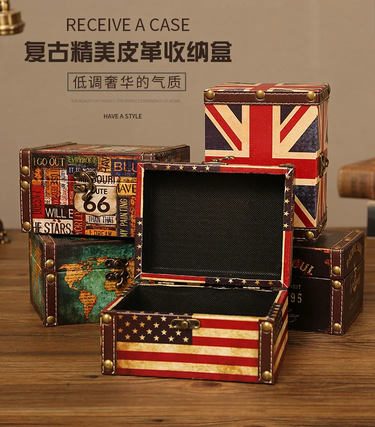 European-Style Retro Storage Box Desktop Cosmetics Sundries Storage Box Leather Wedding Candies Box Gift Box Storage Box