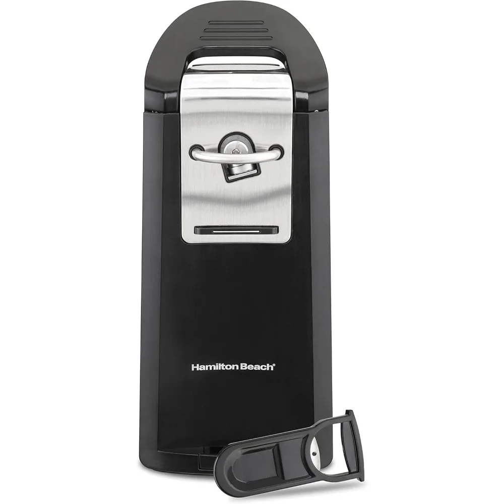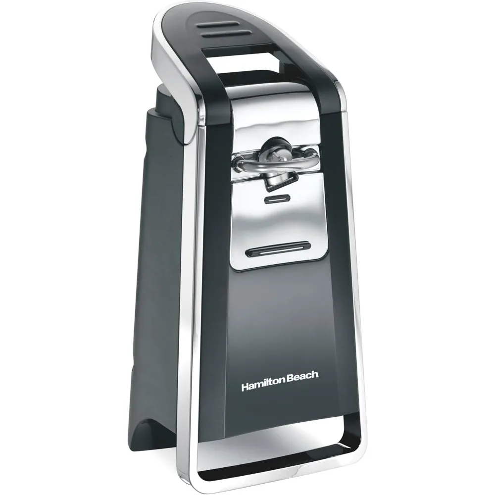 The Hamilton Beach smooth touch can opener easily opens both pop-top and regular cans with the slightest effort with just one hand. You never have to worry about sharp lids when you use this can opener. That's because it cuts cans along the side, leaving you with a smooth, touchable lid. The sleek, stylish black and chrome design complements any kitchen decor and looks great on every countertop. This automatic can opener performs well and looks great.