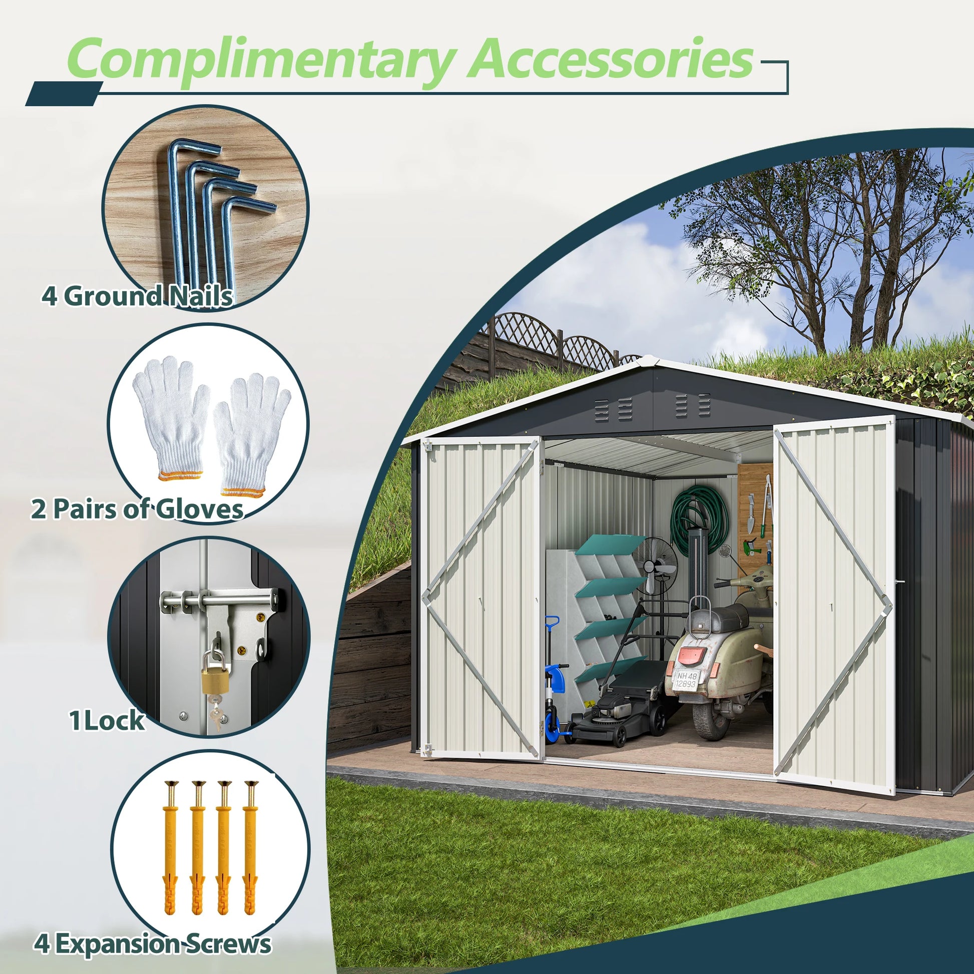 LZBEITEM Outdoor Metal Storage Shed with Lockable Doors is a robust, weather-ready solution for yard and garden organization. Designed as a 10x10 ft outdoor storage shed, it delivers spacious interior storage while keeping a tidy exterior in your outdoor space. The frame is a powder-coated metal construction, built to resist the elements and stay looking sharp for years.