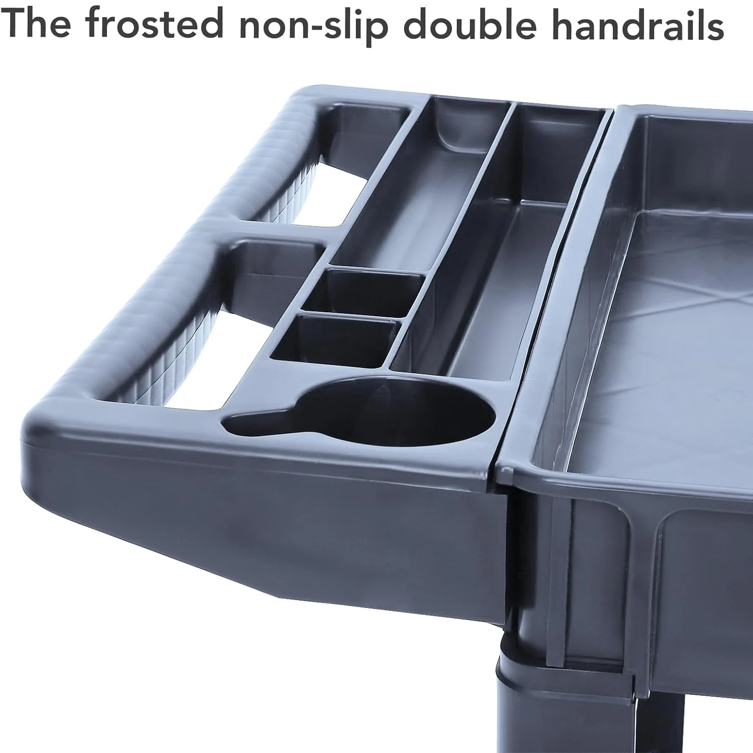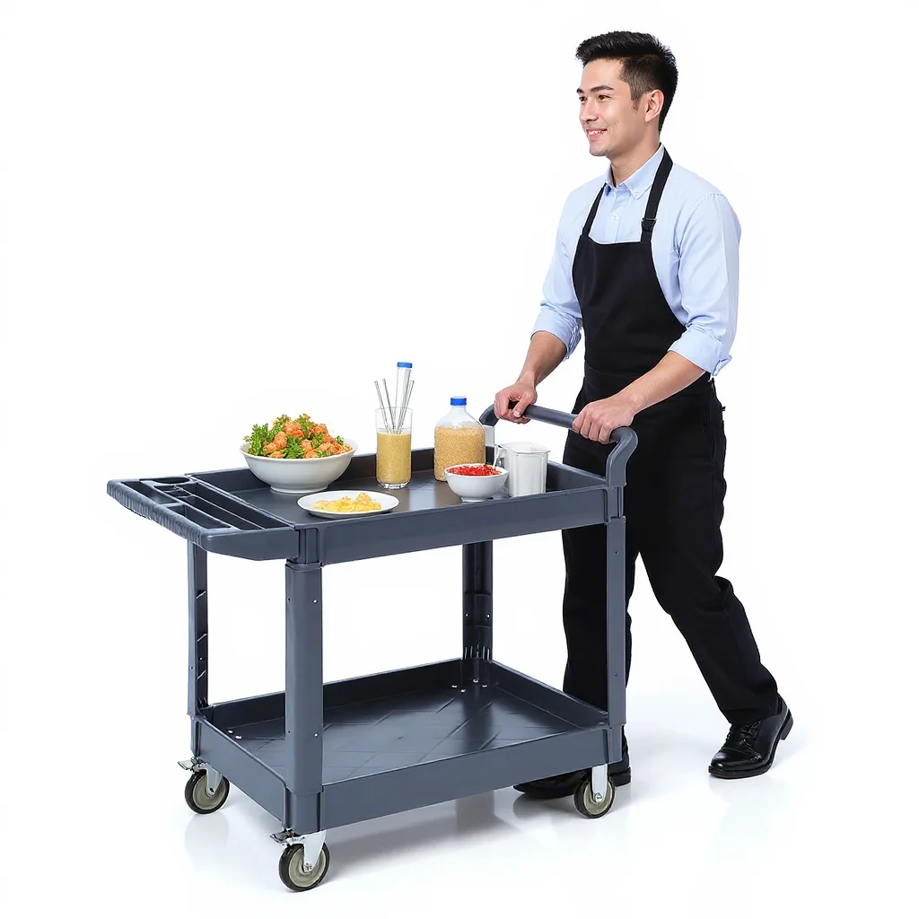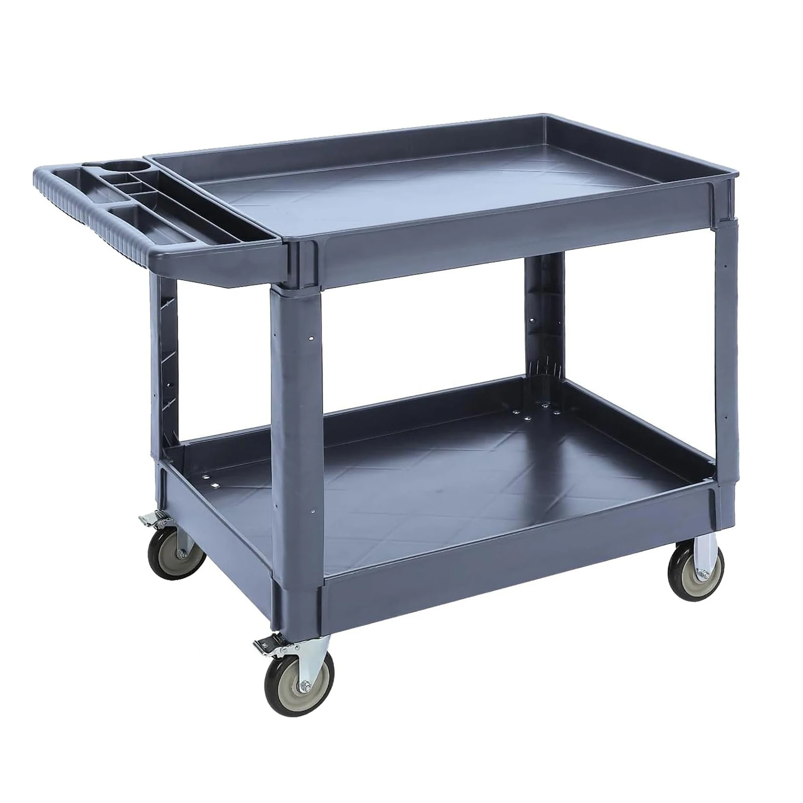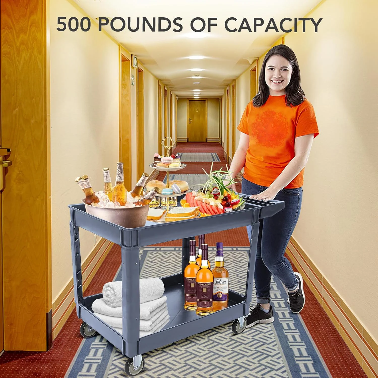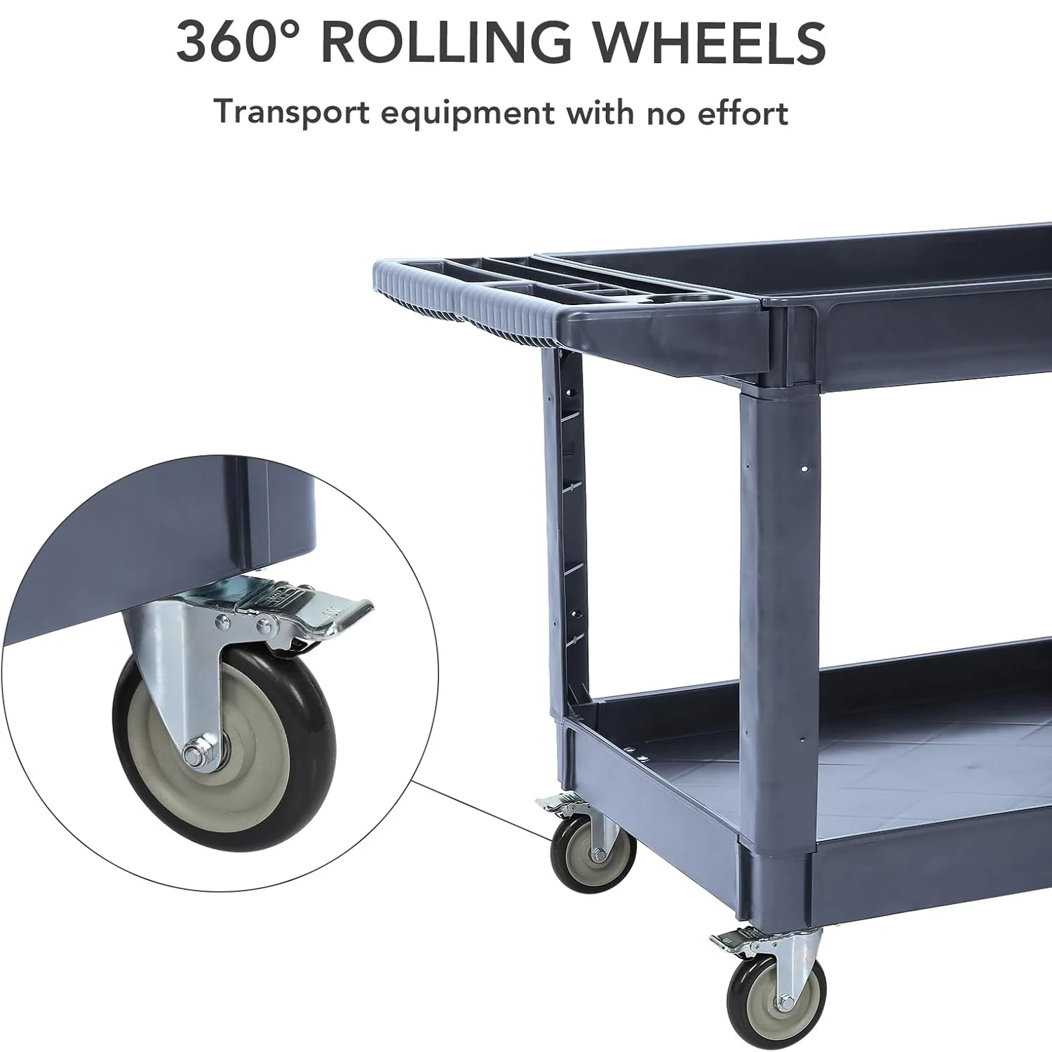 Plastic Service Cart 2 Tiers Utility Service Carts with Wheels Rolling Work Cart On Wheels 360° Rotatable, Ergonomic Handle