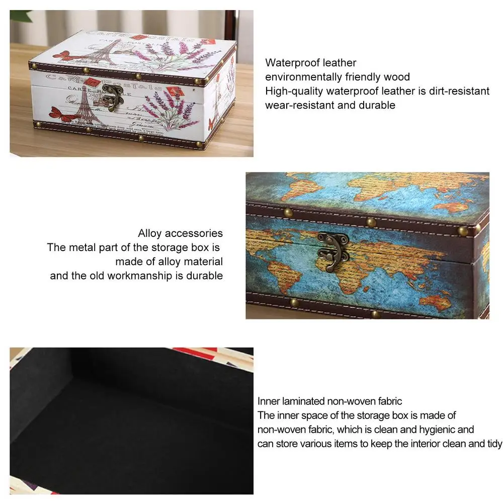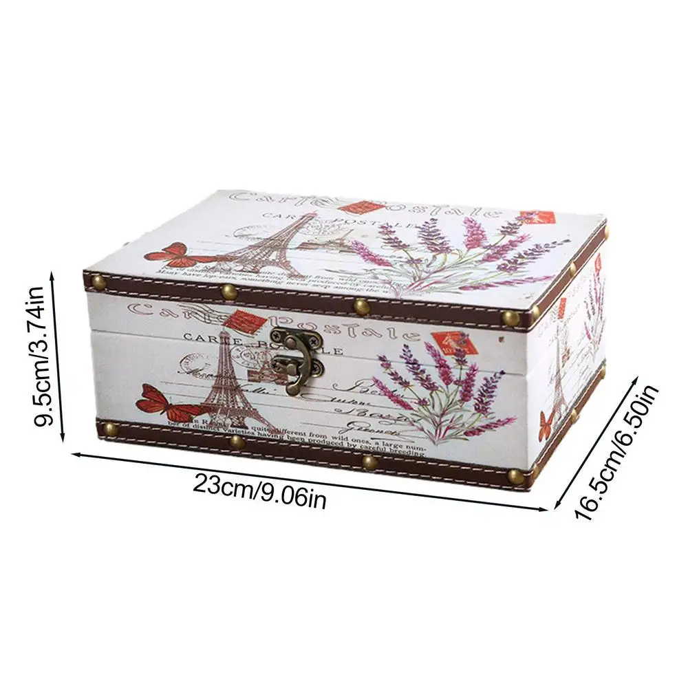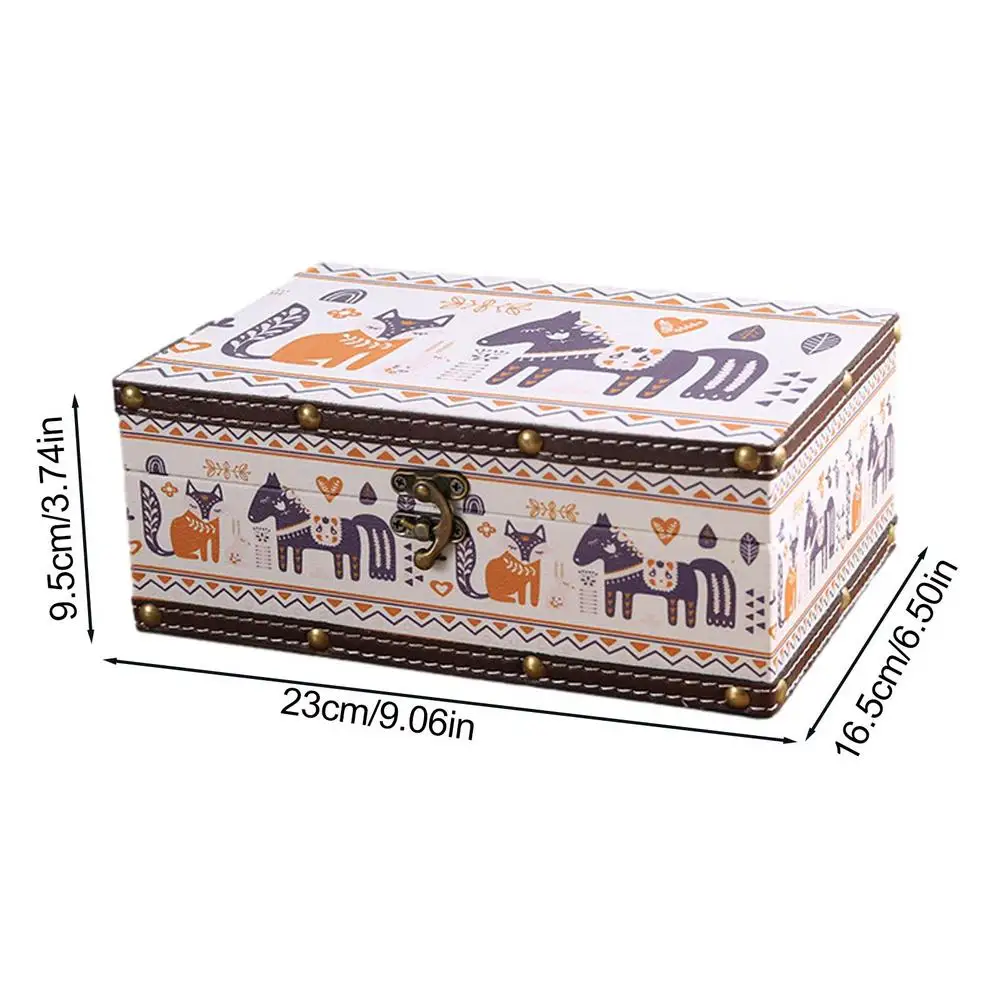 Retro Wooden Storage Box Keepsake Jewelry Box with Lock Kids Storage Chest for Jewelry Notebook Postcards Cosmetics Red Packets