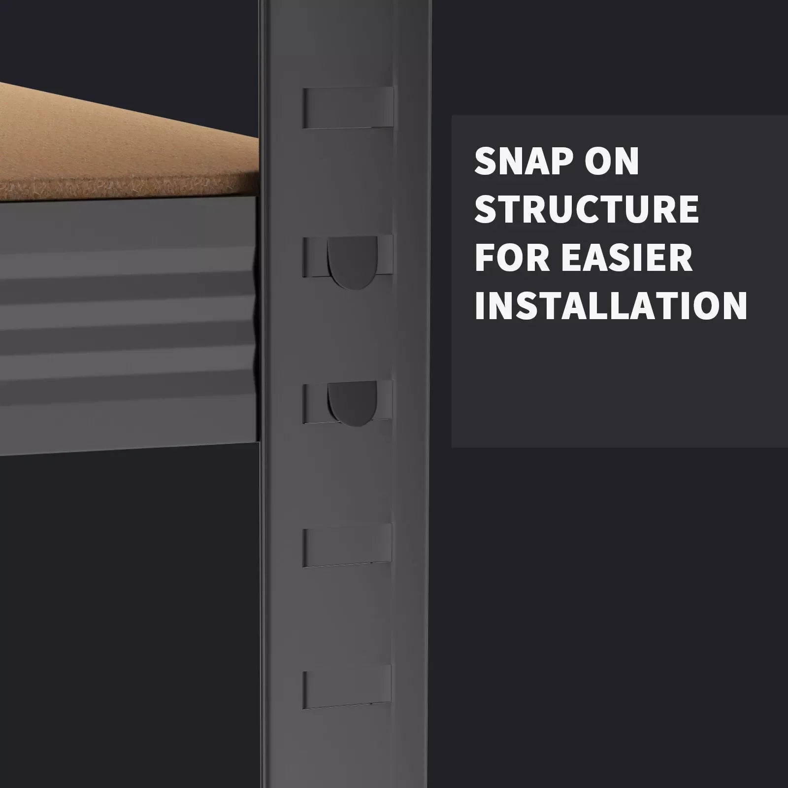 Constructed with premium steel frames and featuring 5mm MDF shelves, these shelves offer exceptional strength and stability. Each shelf can hold up to 175kg (386lbs), with the entire unit supporting a maximum load of 875kg (1930lbs). Whether you're storing tools, pantry items, or office supplies, these shelves provide reliable performance and peace of mind.