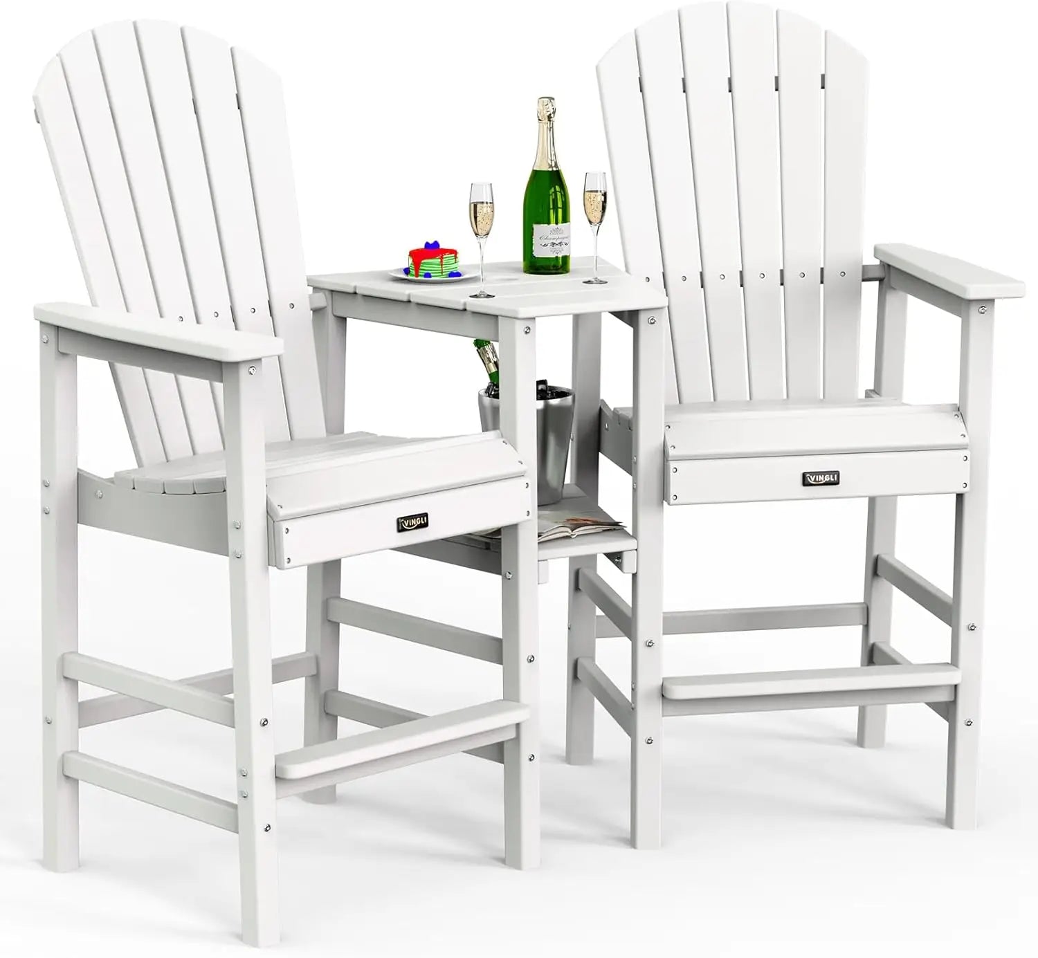 Tall Adirondack Chairs Set of 2 HDPE Balcony Chair with Double Connecting Tray Weather Resistant Outdoor Bar Stools for Patio
